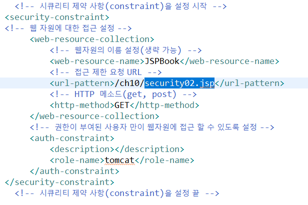 <!-- 시큐리티 제약 사항(constraint)을 설정 끝 -->