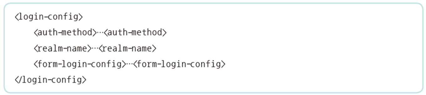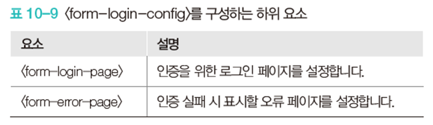 - <form-loginpage>, <form-error-page> 등의 하위 요소로 구성됨
