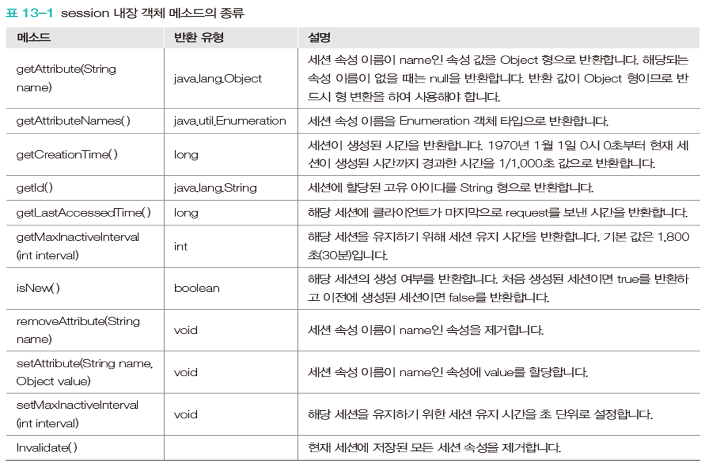 •세션 속성 값은 Object 객체 타입만 가능하기 때문에 int, double, char 등의 기본 타입은 사용할 수 없음