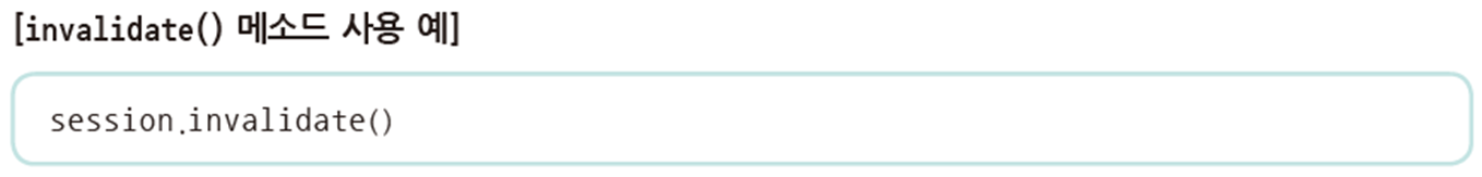 invalidate() 메소드 : 세션에 저장된 모든 세션 속성 이름을 삭제