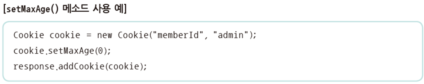 쿠키의 유효 기간을 결정하는 setMaxAge() 메소드에 유효 기간을 0으로 설정하여