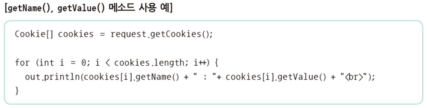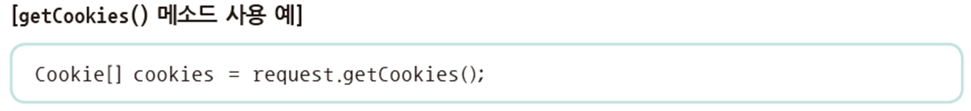 클라이언트에 저장된 모든 쿠키 객체를 가져오려면 request 내장 객체의 getCookies( ) 메소드를 사용