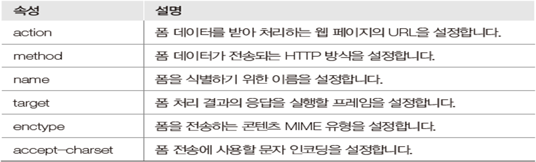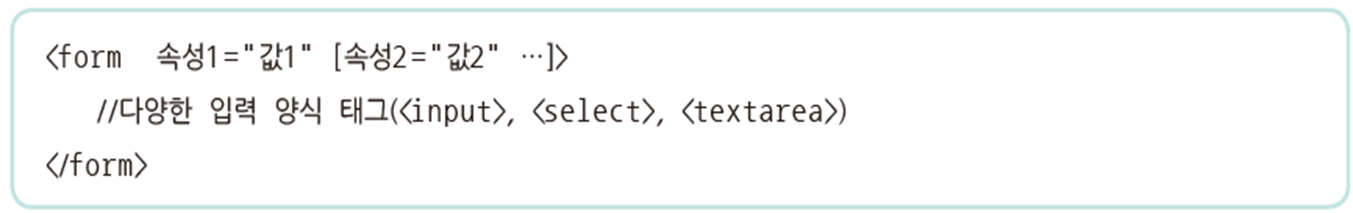 - 단독으로 쓰이지 않고 사용자가 다양한 정보를 입력하는 양식을 포함하는 최상위 태그