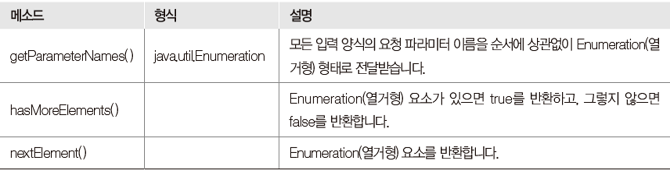 //nextElement 메소드 : 각 요청 파라미터의 이름을 가져옴