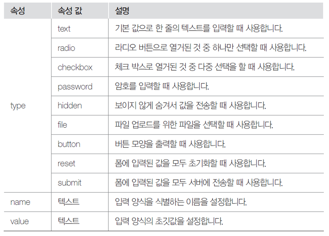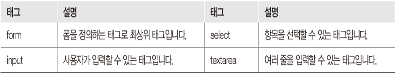 - 사용자가 다양한 정보를 입력하고 서로 전달할 때 사용하는 태그
