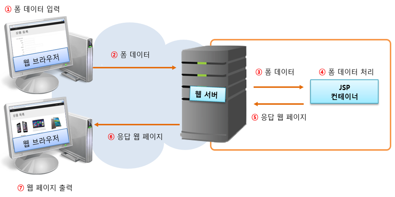 - 전송한 데이터는 웹 서버가 처리하고 처리 결과에 따라 다른 웹 페이지를 보여줌