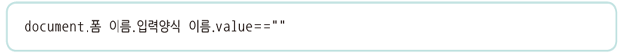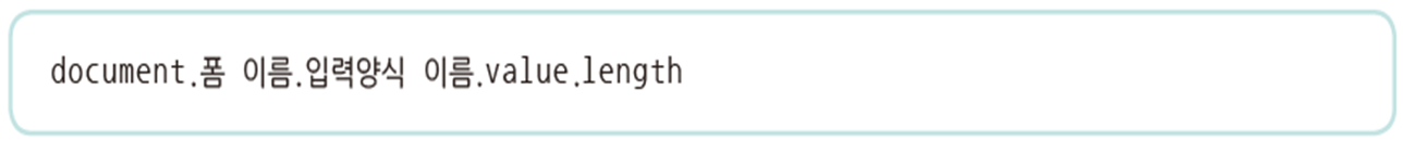 - forms 객체를 이용하는 경우, forms 객체는 배열의 형태이기 때문에 length 속성으로 크기를 알 수 있고 배열 값인 index는 form 태그가 나타나는 순서로 0부터 시작