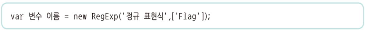 - RegExp 객체를 이용하는 방법으로, 정규 표현식이 자주 변경될 때 주로 사용